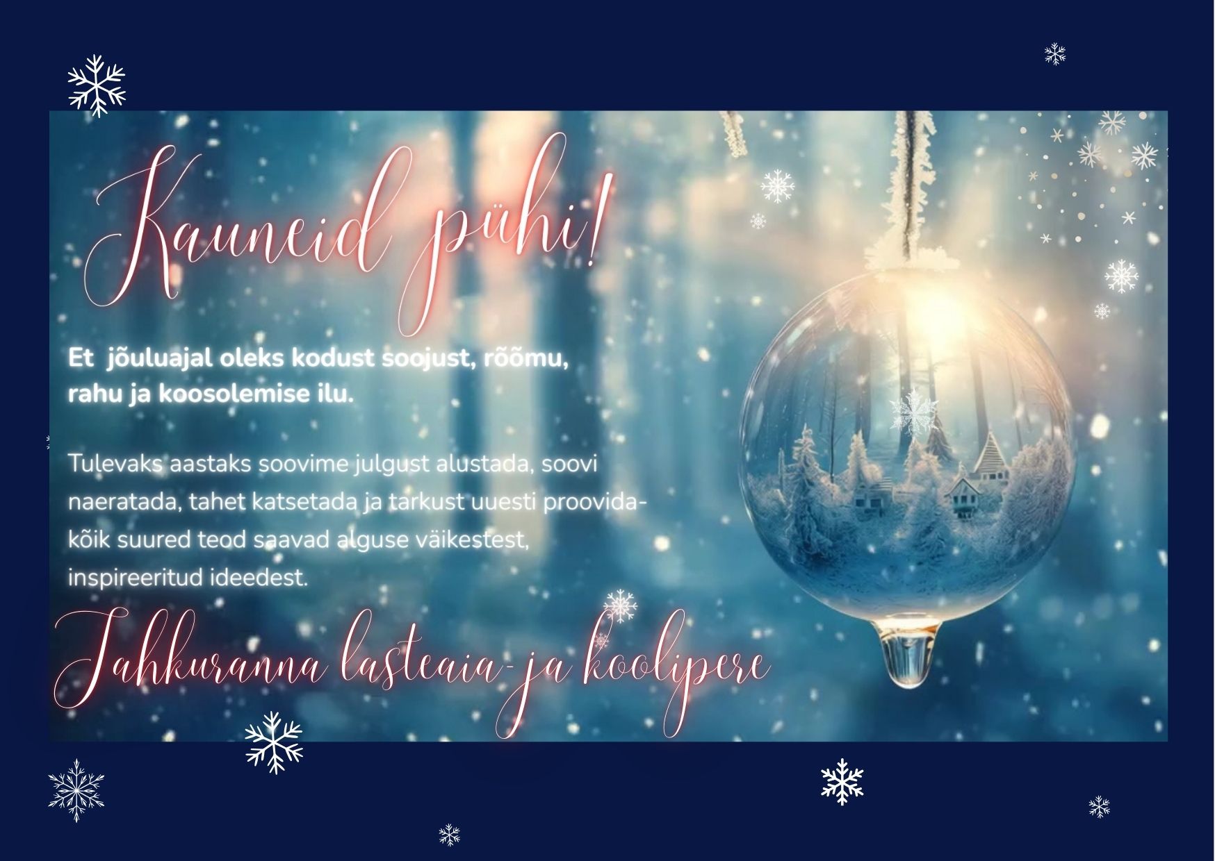 Jõulupostkasti avamine Tahku Tare juures Loomise kuupäev 01.12.2025 Autor Lasteaed ja kool Kalateadlane külas Loomise kuupäev 26.11.2025 Autor Kool Rahvusvaheline lastepäev Loomise kuupäev 20.11.2025 Autor Lasteaed Põhjamaade kirjanduse nädal Loomise kuupäev 11.11.2025 Autor Kool Vaata rohkem