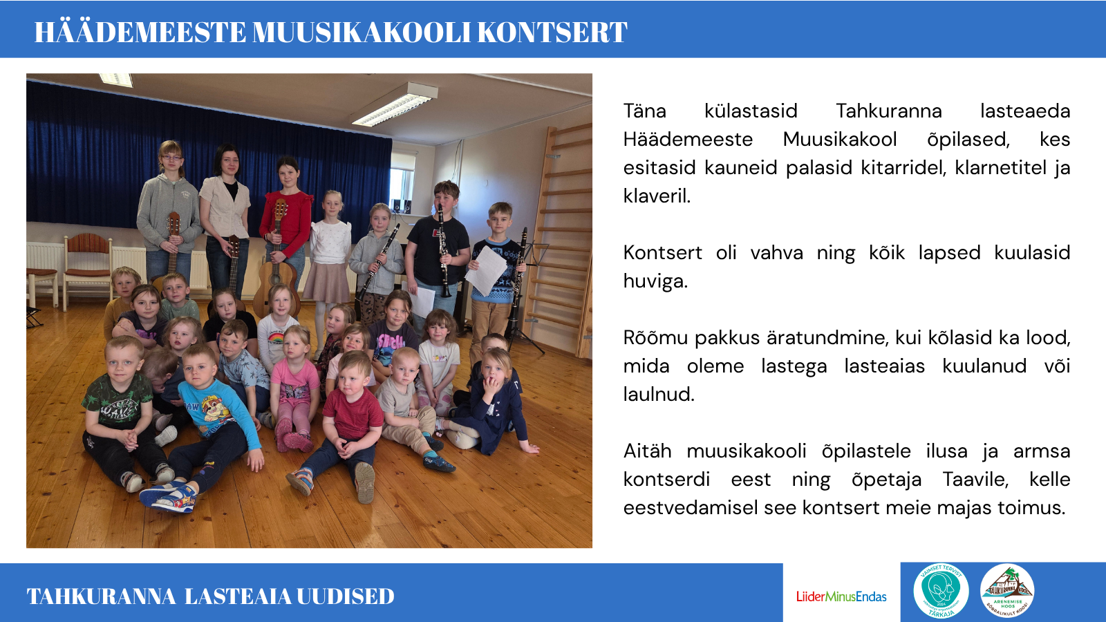 Vastuvõtt lasteaeda Loomise kuupäev 12.03.2026 Autor Lasteaed Vastuvõtt kooli Loomise kuupäev 12.03.2026 Autor Kool Eesti Vabariigi 108. aastapäeva tähistamine Loomise kuupäev 19.02.2026 Autor Kool Külalised: Kaitseliidu Pärnumaa maleva noorteinstruktorid Loomise kuupäev 18.02.2026 Autor Kool Vaata rohkem