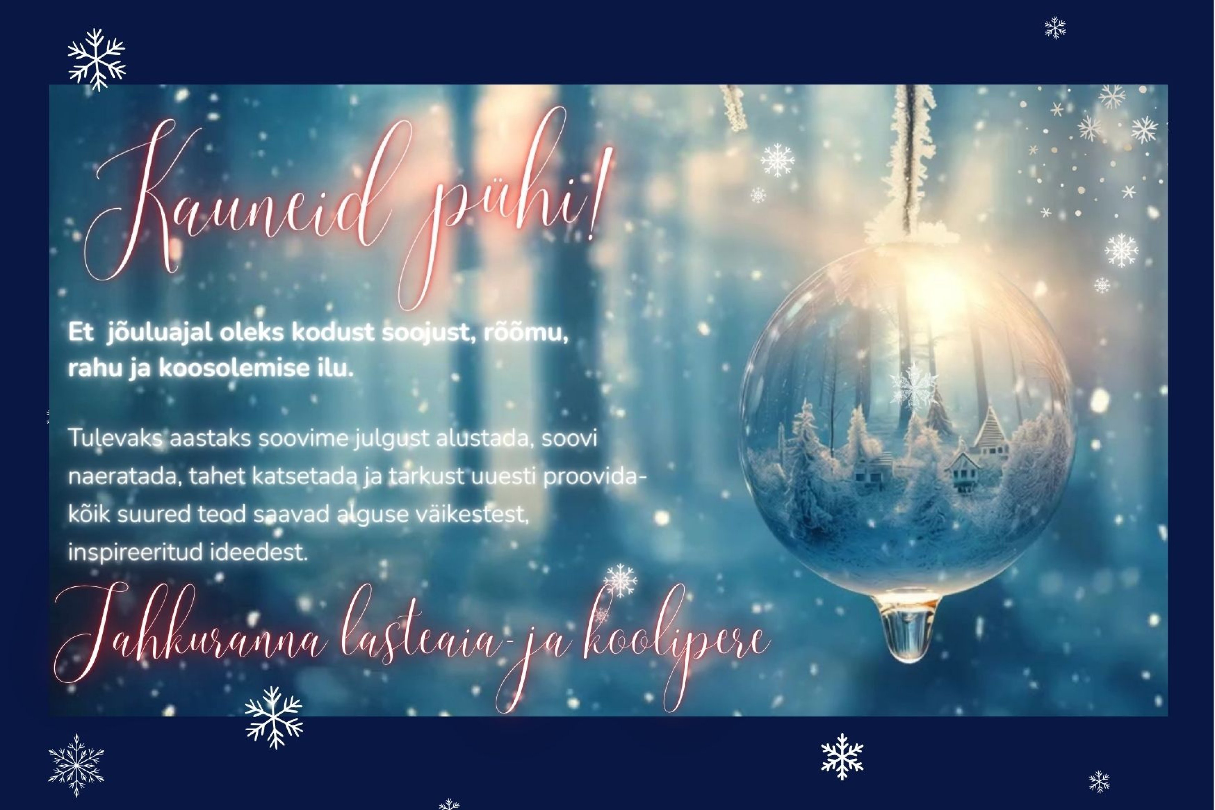 Jõulupostkasti avamine Tahku Tare juures Loomise kuupäev 01.12.2025 Autor Lasteaed ja kool Kalateadlane külas Loomise kuupäev 26.11.2025 Autor Kool Rahvusvaheline lastepäev Loomise kuupäev 20.11.2025 Autor Lasteaed Põhjamaade kirjanduse nädal Loomise kuupäev 11.11.2025 Autor Kool Vaata rohkem